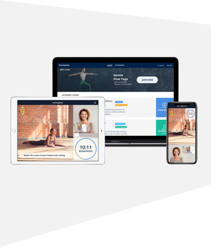 FlexTogether features a broad range of popular fitness programs customized to your skill level. There are also targeted programs for disease management such as Parkinson’s, arthritis, and chronic pain.